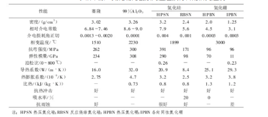 表格來源:氮化物陶瓷系高溫透波材料的研究進展